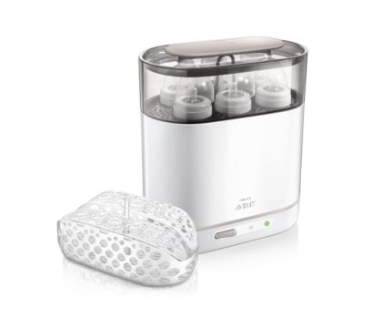 With its adjustable size the philips avent 3 in 1 electric steam steriliser also spelt sterilizer takes up the least amount of kitchen space yet perfectly fits the items you want to sterilise whether it s a few small items or a full load.